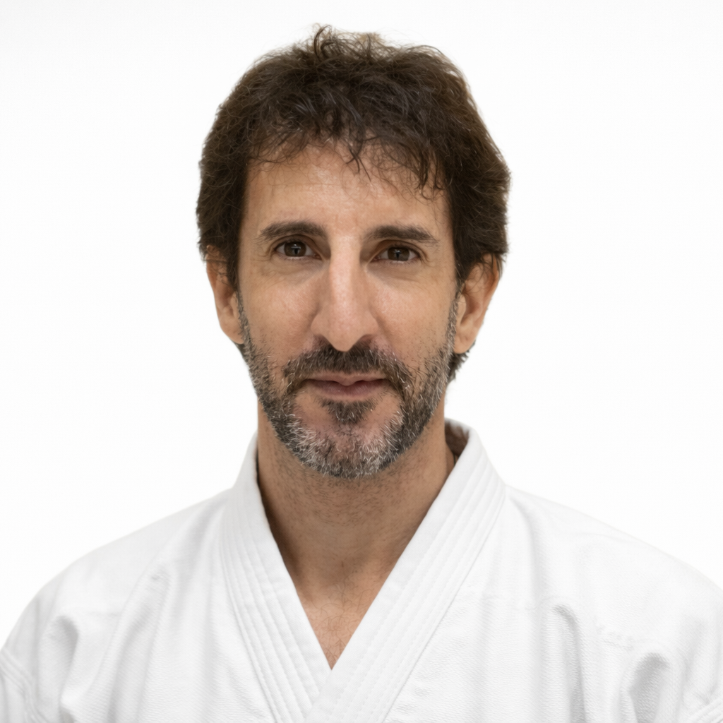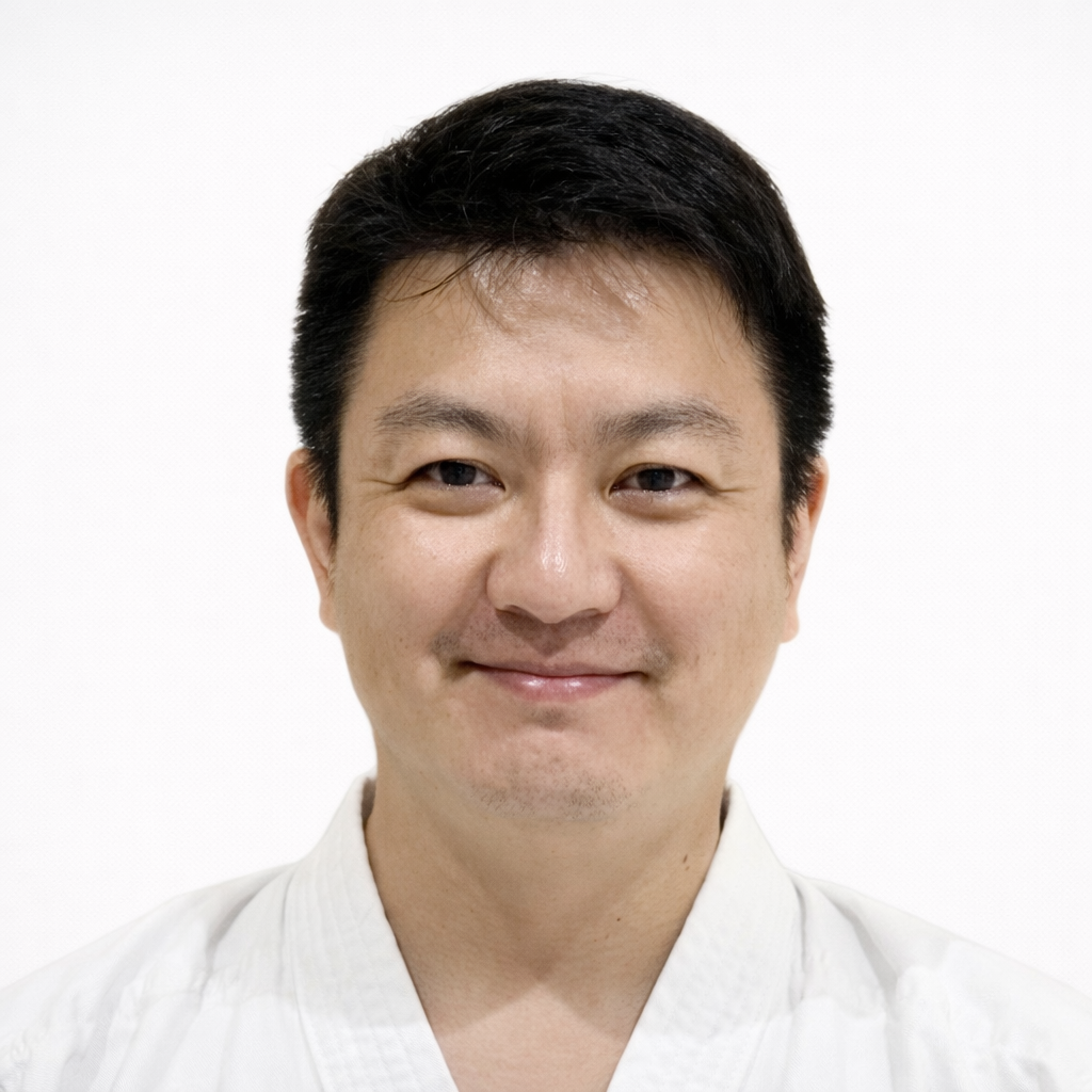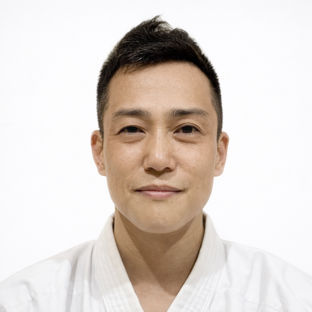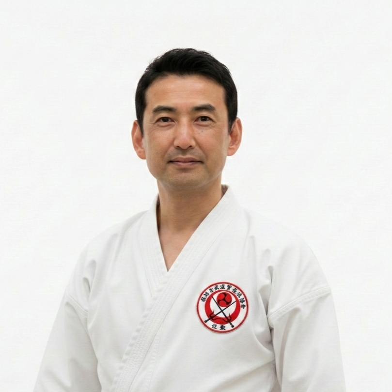 私は長きにわたり、新垣道場にて稽古を重ねてまいりました。直接の師である新垣昭善先生のもとで日々ご指導を賜り、技術のみならず、武道に向き合う姿勢や心の在り方について、多くの学びを授けていただきました。また折に触れ、初代会長与那嶺幸助先生、現会長新垣隆先生にもご指導をいただく機会に恵まれ、私のこれまでの稽古において、大きな支えとなっております。
